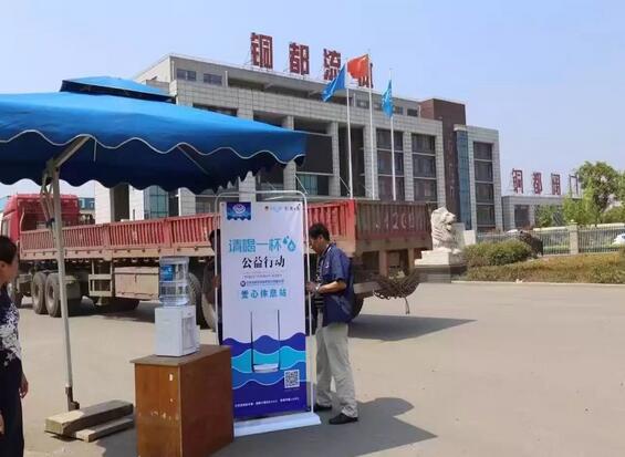 他們用汗水,方便了市民的生活、他們用汗水,洗去了城市的塵埃,因為要堅守崗位,甚至有時無法在口渴時喝一杯涼水,也無法在酷暑難耐時稍作休息。炎炎夏日,一杯清水對坐在辦公室的市民來說,是微不足道的,但是對高溫酷暑下的為戶外高溫作業(yè)人員來說,喝一杯清水在繁忙的一天中卻顯得如此奢侈。7月25日,共青團銅陵市委、銅陵日報社聯(lián)合發(fā)起"請喝一杯水"愛心公益活動后,我公司立即響應(yīng)號召,在我公司大門口設(shè)立愛心崗?fù)?愛心休息站",為在烈日下工作的人們提供夏季的一絲涼意。