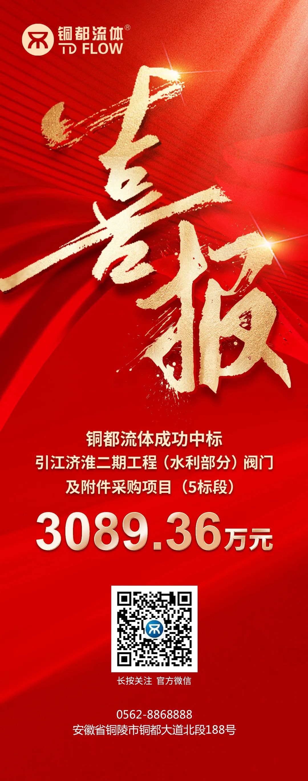 銅都流體成功中標(biāo)引江濟(jì)淮二期工程(水利部分)閥門及附件采購項(xiàng)…