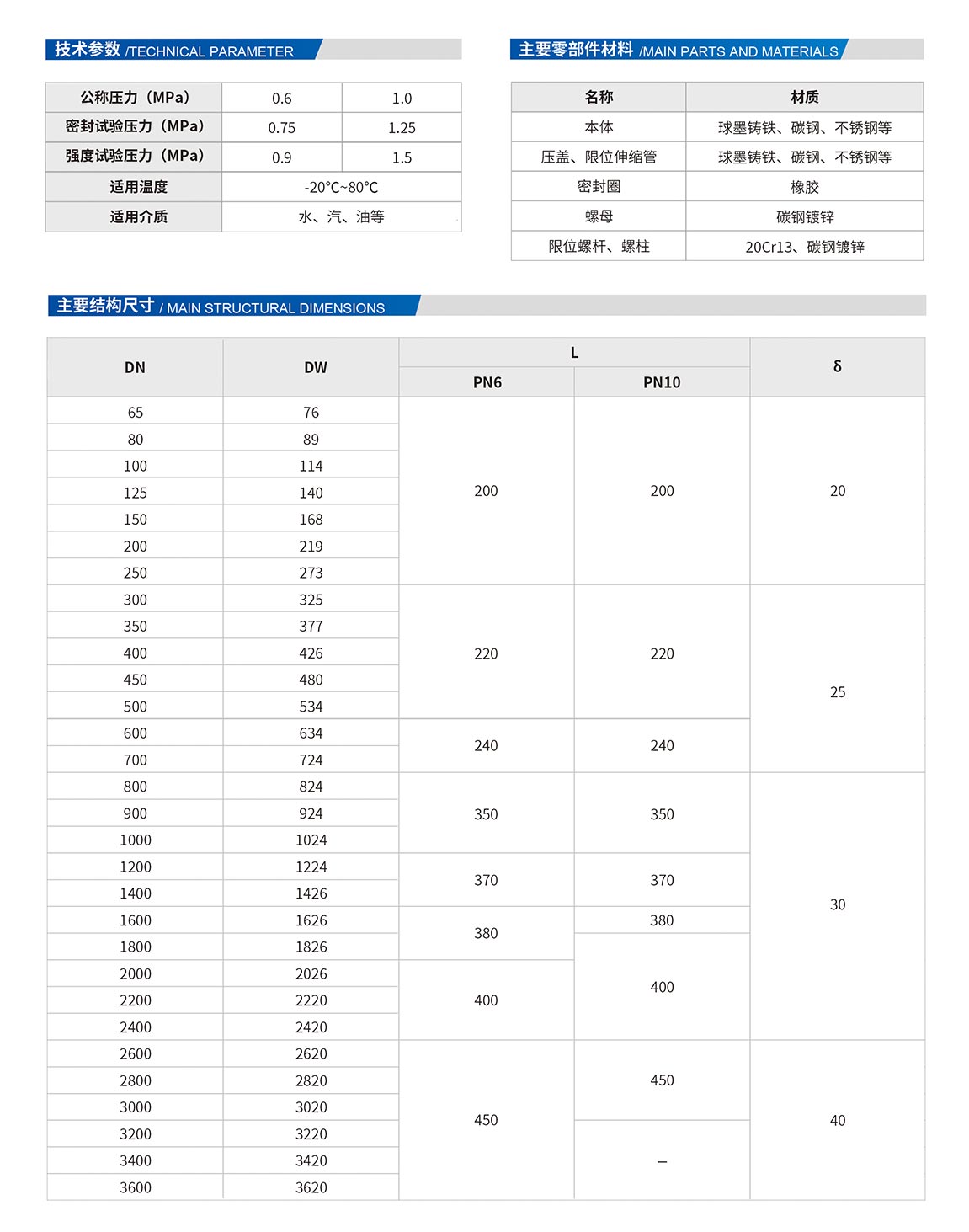 松套傳力接頭是由松套伸縮接頭和短管法蘭、傳力螺桿等構(gòu)件組成。