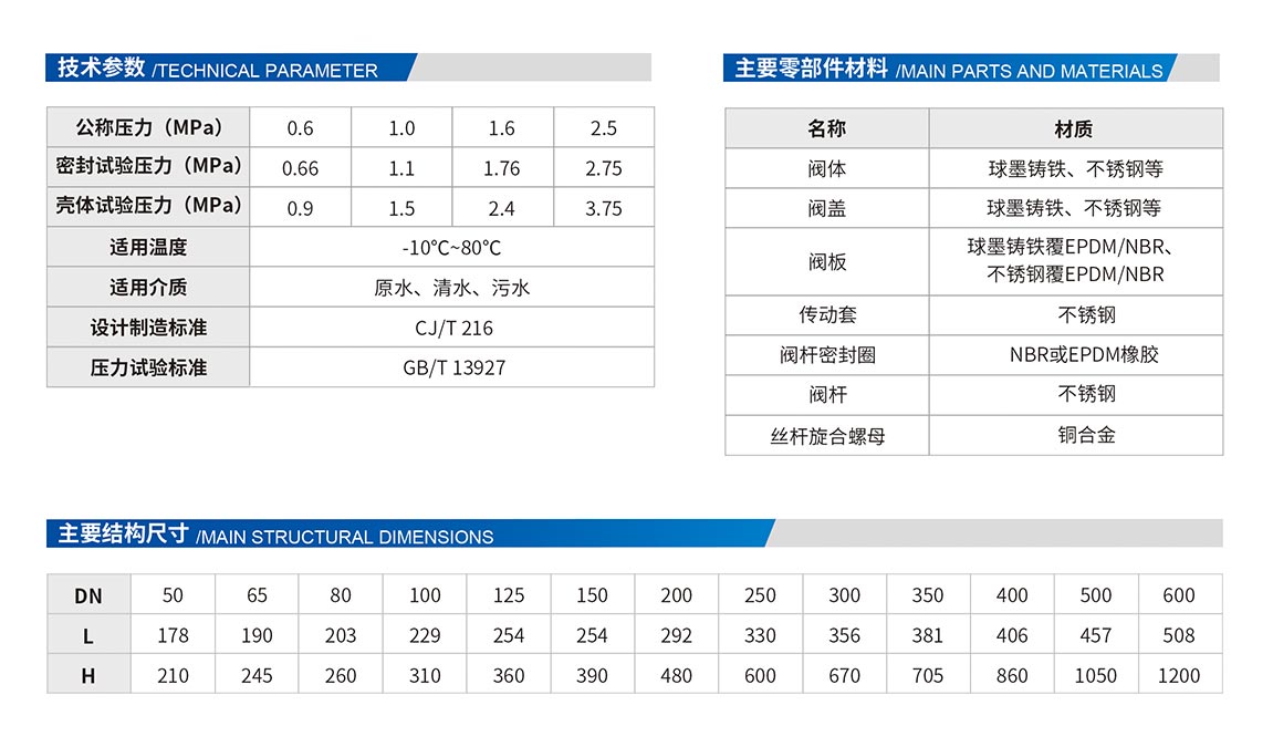 閥門不會生銹,與介質(zhì)接觸的橡膠及環(huán)氧樹脂涂層均不會對水質(zhì)構成影響。
